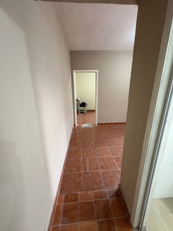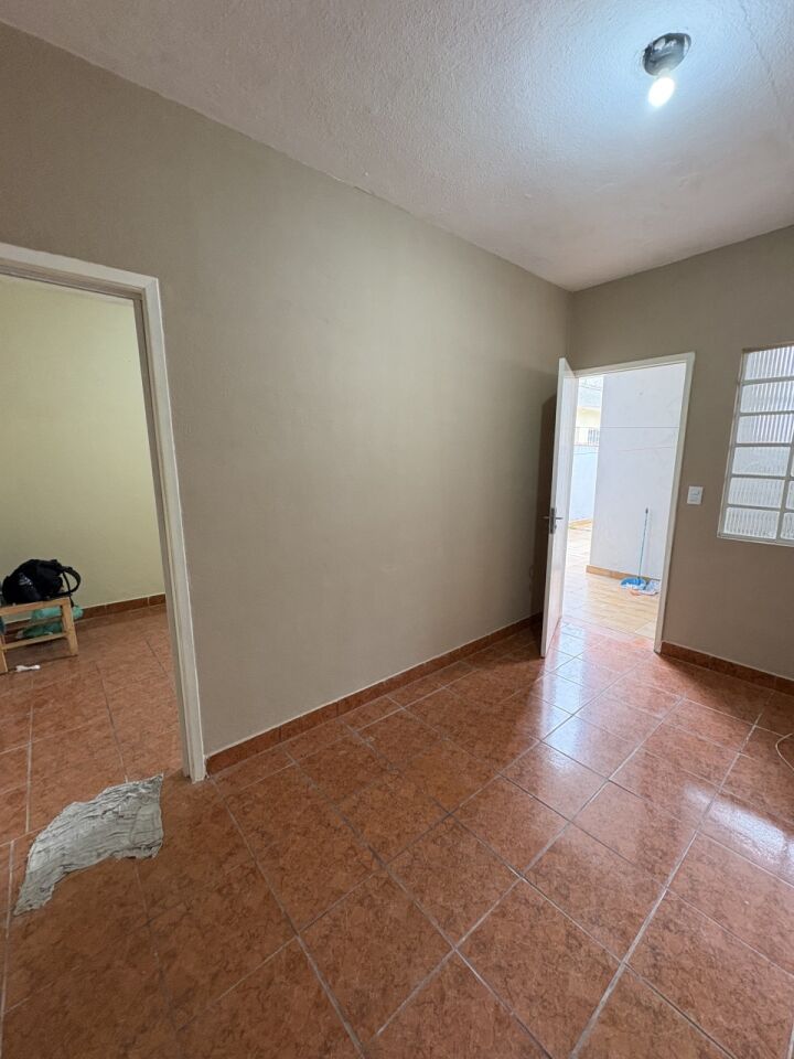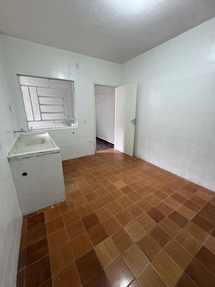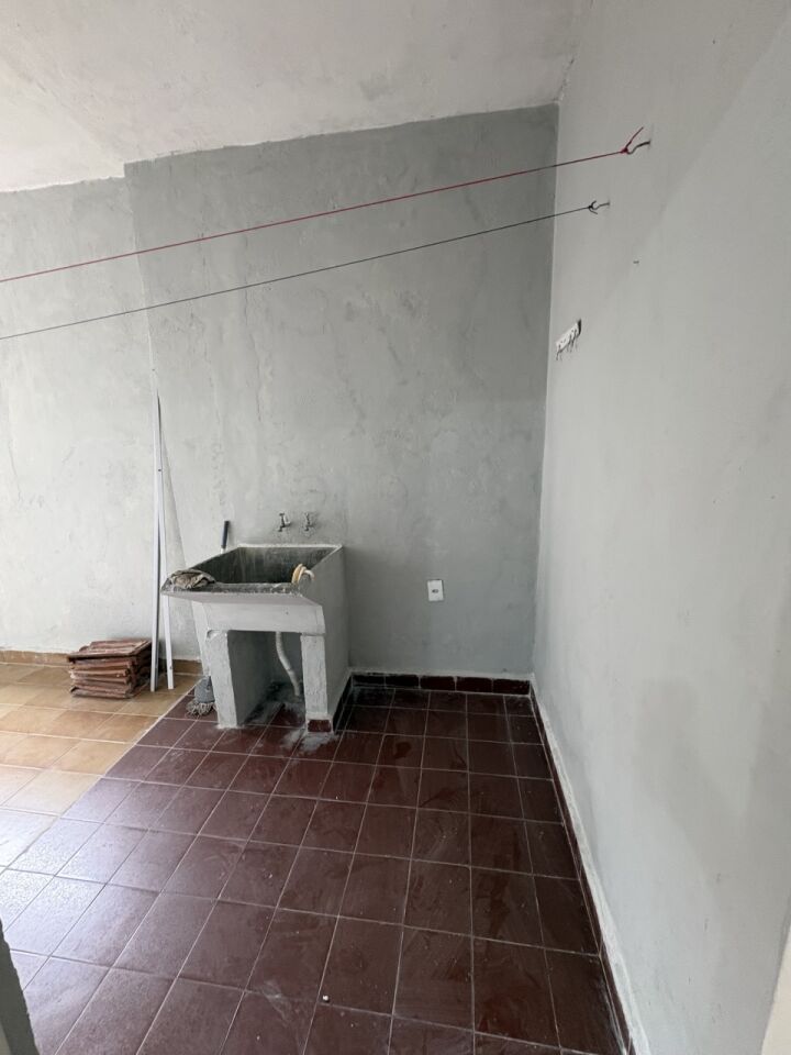 Casa térrea de fundos com 1 quarto, 1 sala, cozinha, 1 banheiro, lavanderia e pequeno quintal .