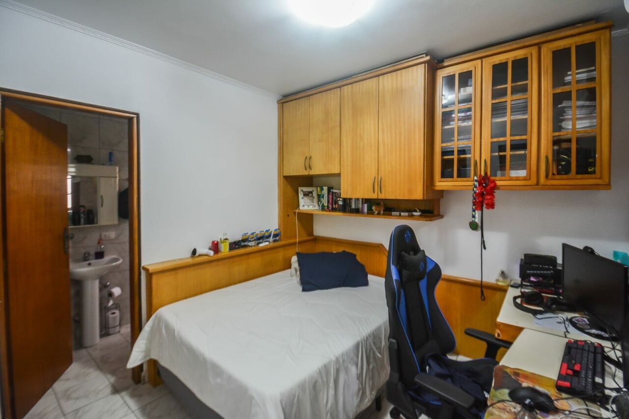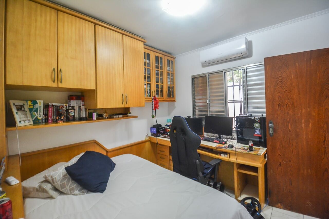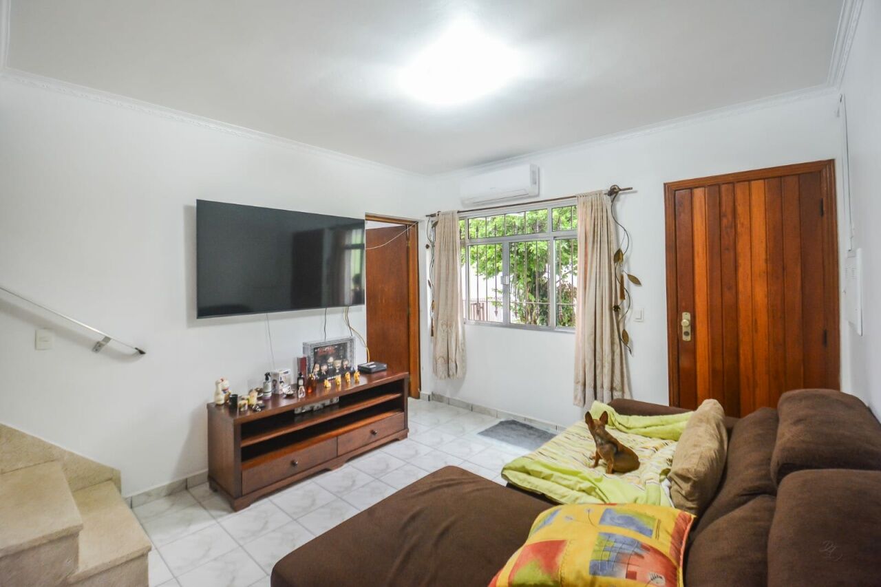 Sobrado a venda com 3 dormitórios, sendo 1 suíte com ar condicionado, sala espaçosa com ar condicionado, cozinha, quintal com churrasqueira, jardim, 2 vagas de garagem.