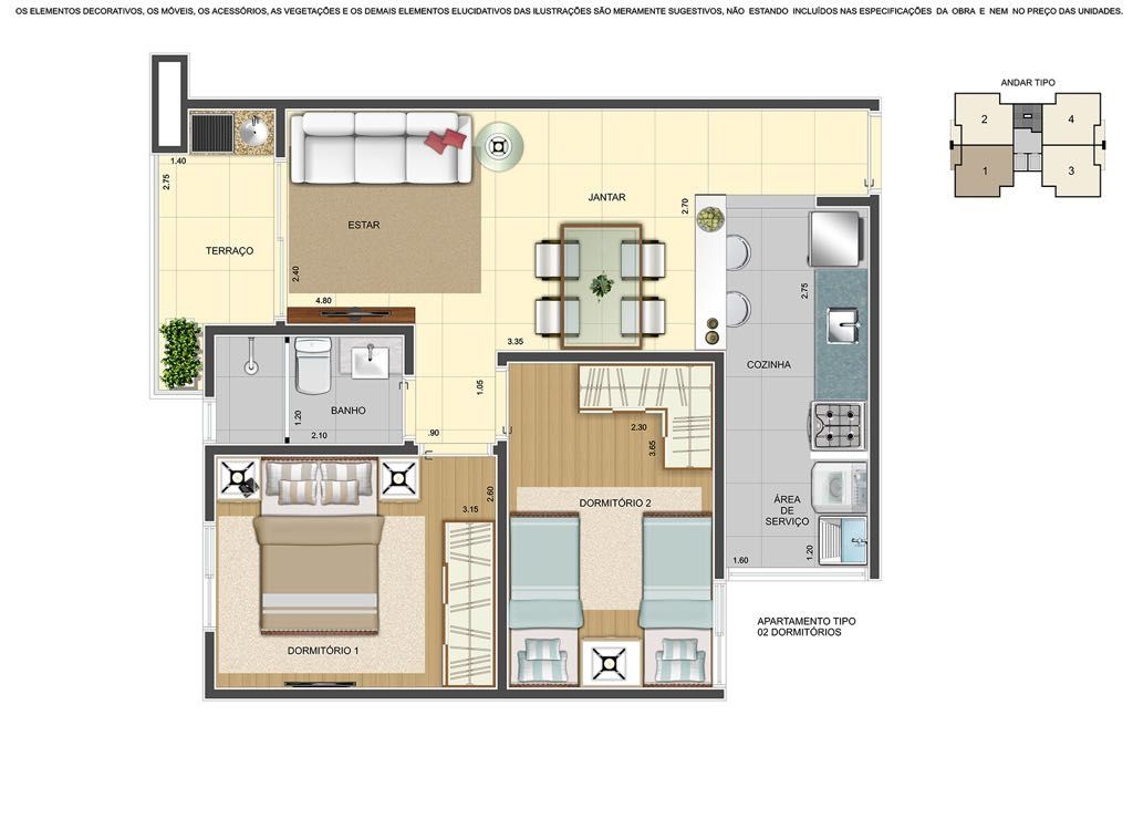 Apto novo com 2 dormitórios, sala, cozinha, 1 banheiro, 1 vaga de garagem, e sacada gourmet. Poucas unidades