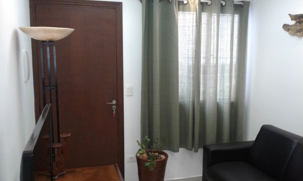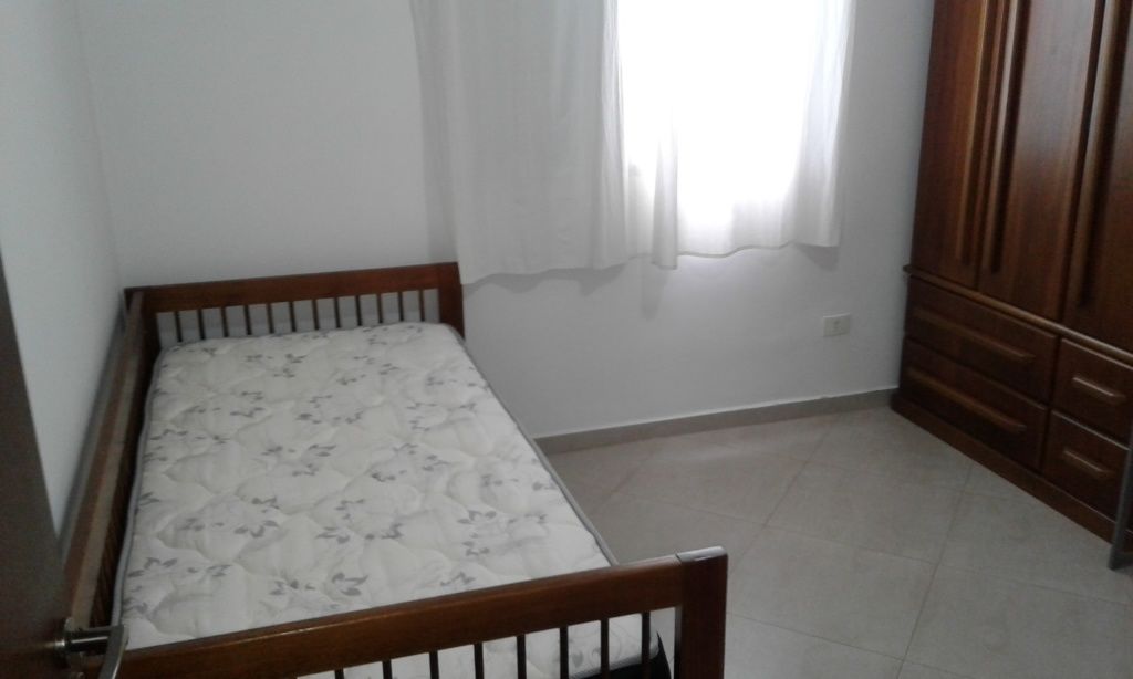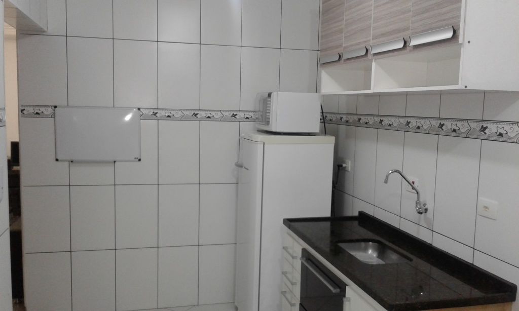 2 dormitorios, sala, cozinha, 1 banheiro, area de serviço, 1 vaga de garagem. Todo em piso frio, ficam todos os moveis.