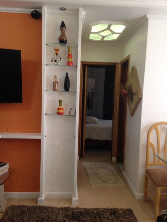2 dormitórios piso laminado, cozinha planejada, lavanderia planejada, cozinha e banheiro porcelanato, banheiro com box de vidro, sanca na sala e corredores, 1 vaga de garagem coberta.
