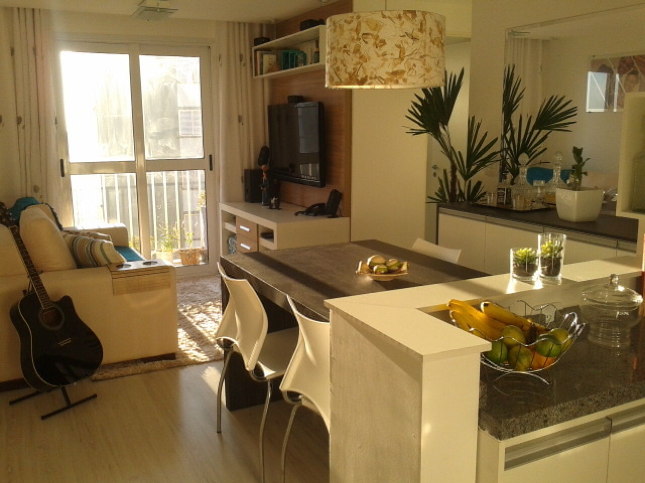 Apto todo mobiliado, com 2 dormitórios, sala com sacada, cozinha aberta, banheiro, lavanderia, 1 vaga de garagem.