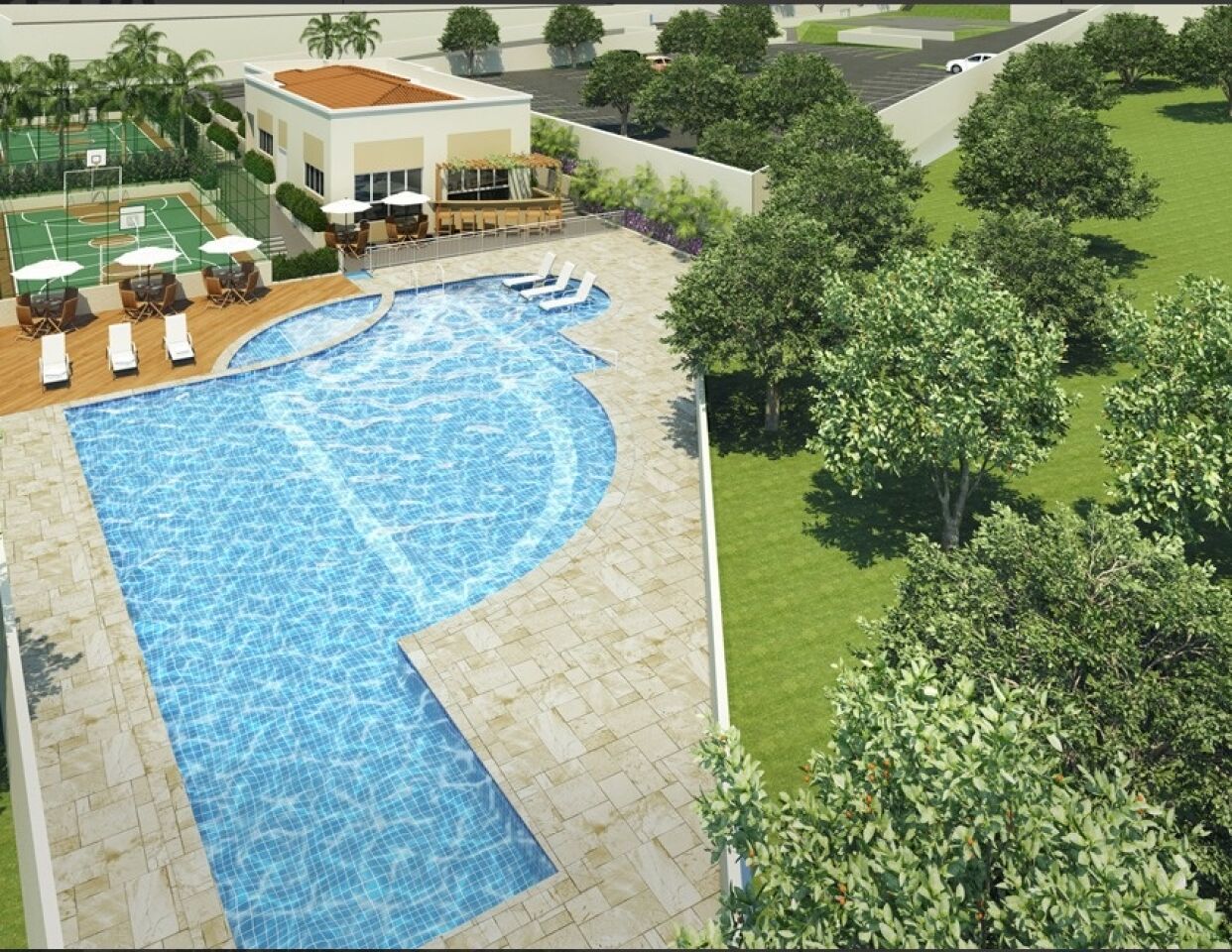 Condomínio com lazer completo com piscina, academia, churrasqueira, salao de festas.