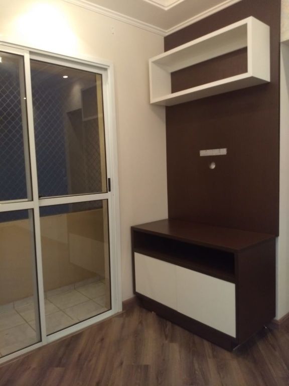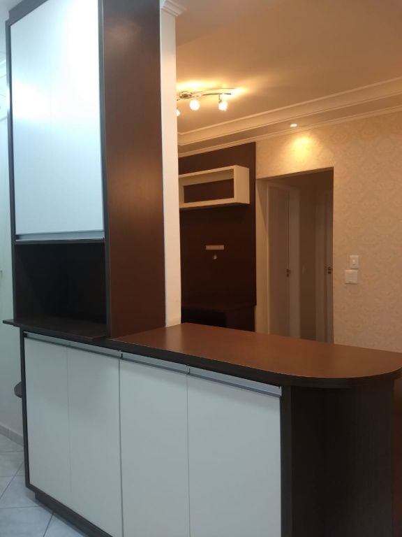Apto com 2 dormitórios planejados, sala com sacada, cozinha planejada, papel de parede importado, piso laminado, 1 vaga de garagem coberta.