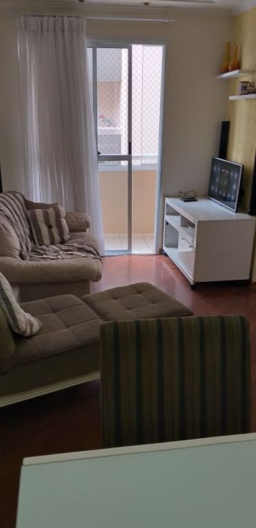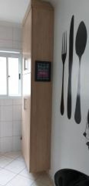 Apto com 2 dormitórios com cama, cozinha americana com linha eletrolux, sala com sofá, mesa e quadros, piso laminado, 1 vaga de garagem. Oportunidade